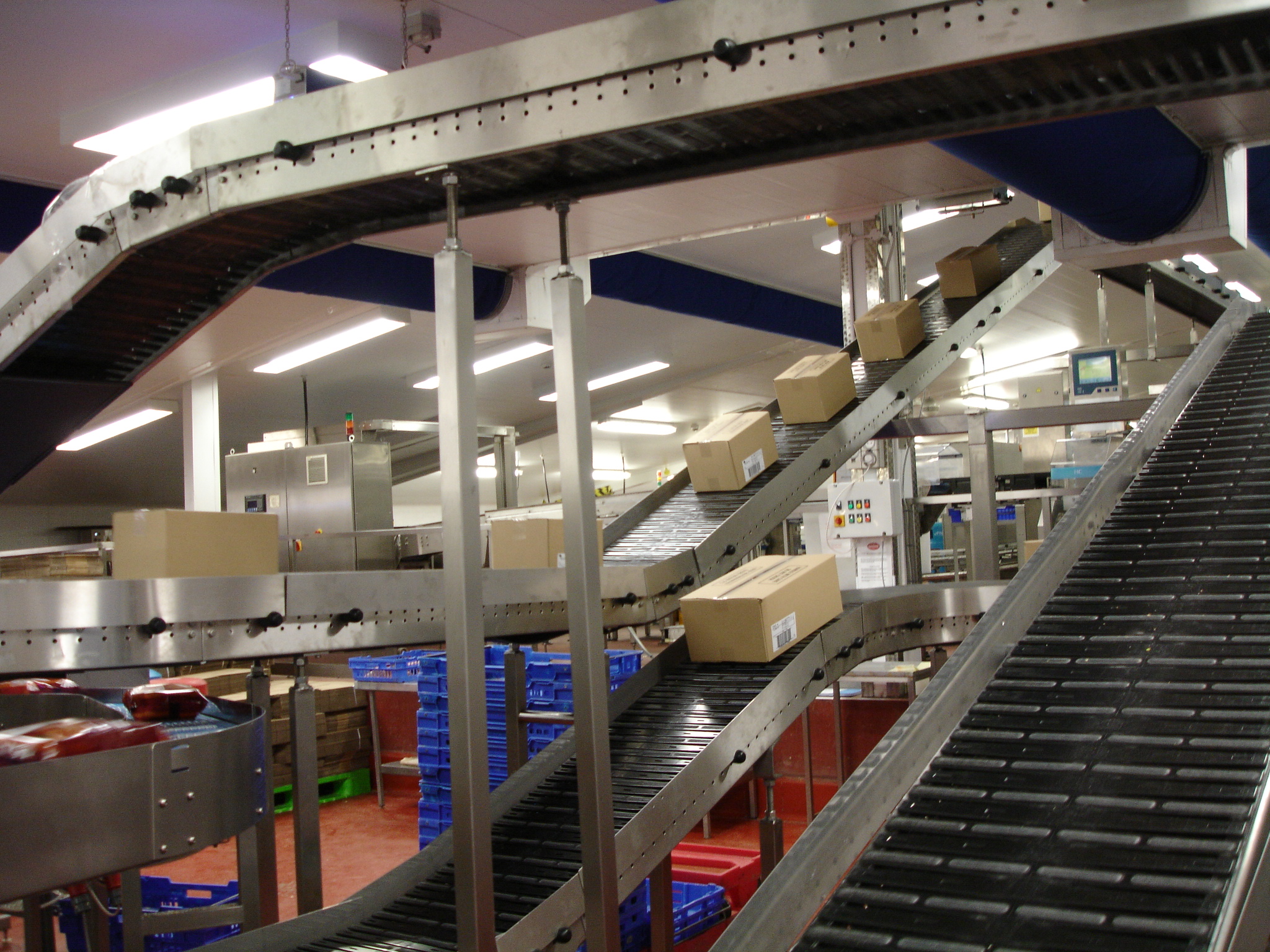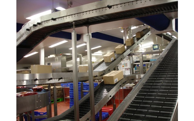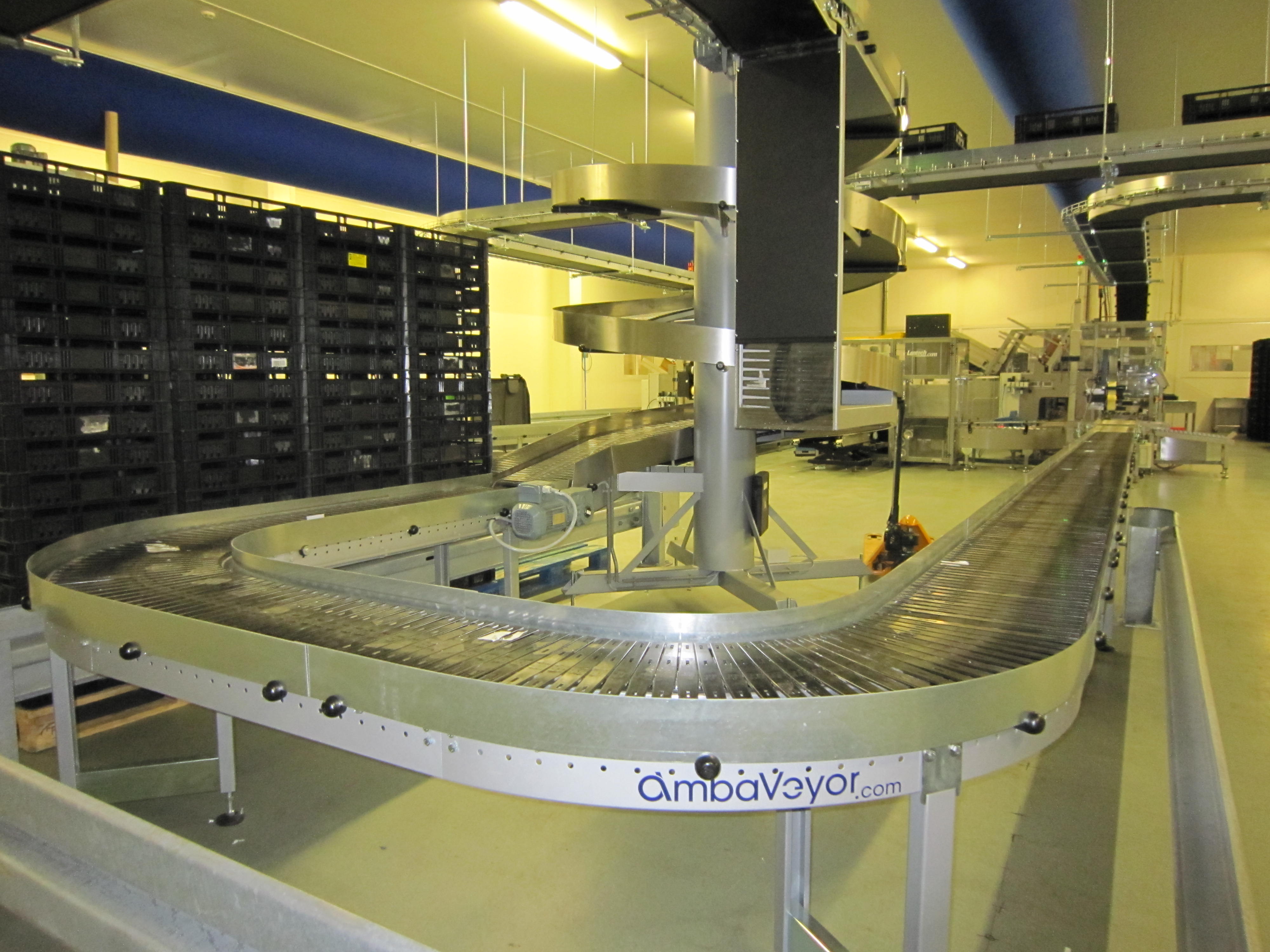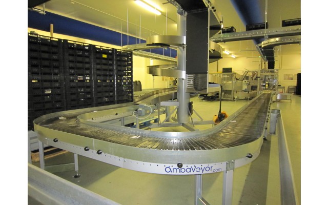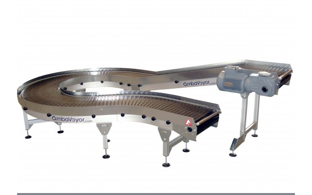 The Ambaveyor conveyor system gives you endless flexibility with the ability to incorporate straights, inclines and curves into one continuous conveyor. A side flexing slat belt conveyor that operates off a continuous chain drive supports a more extensive variety of products; smoothly conveying cartons, bags, satchels and more.
