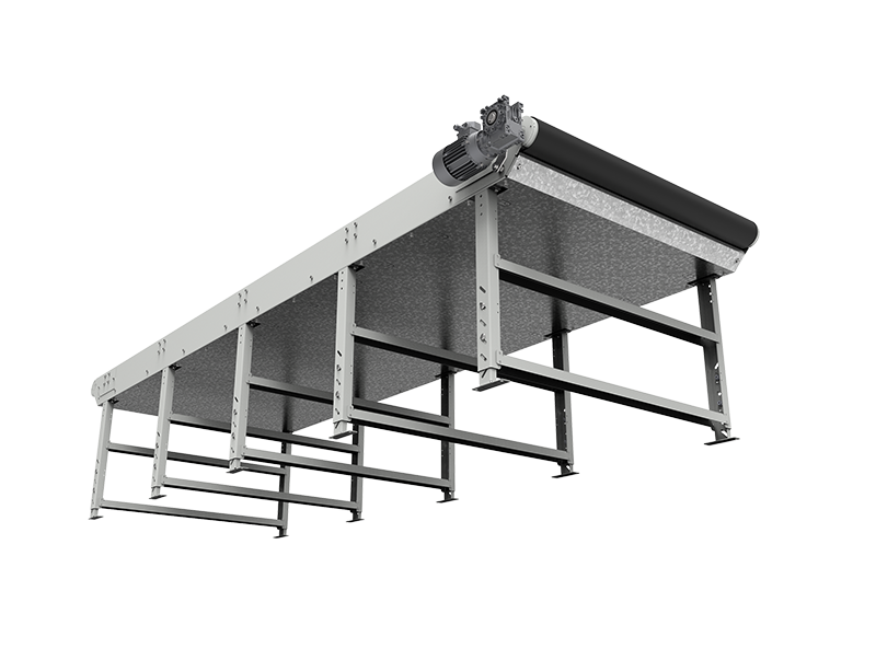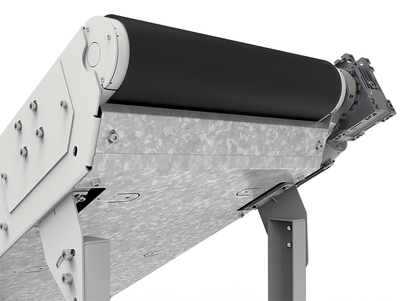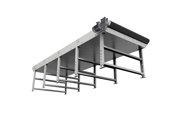 A roller support bed moves the product with less friction, reducing energy requirements by 75% plus. It can also handle heavier loads and higher speeds and is designed to take impact making it ideal for transporting fragile product. Using a roller support bed also gives more flexibility around the length and width of the conveyor.
