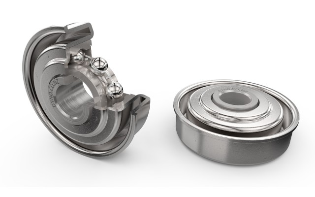 Medium duty precision bearing for use when plastic housing is not desirable.