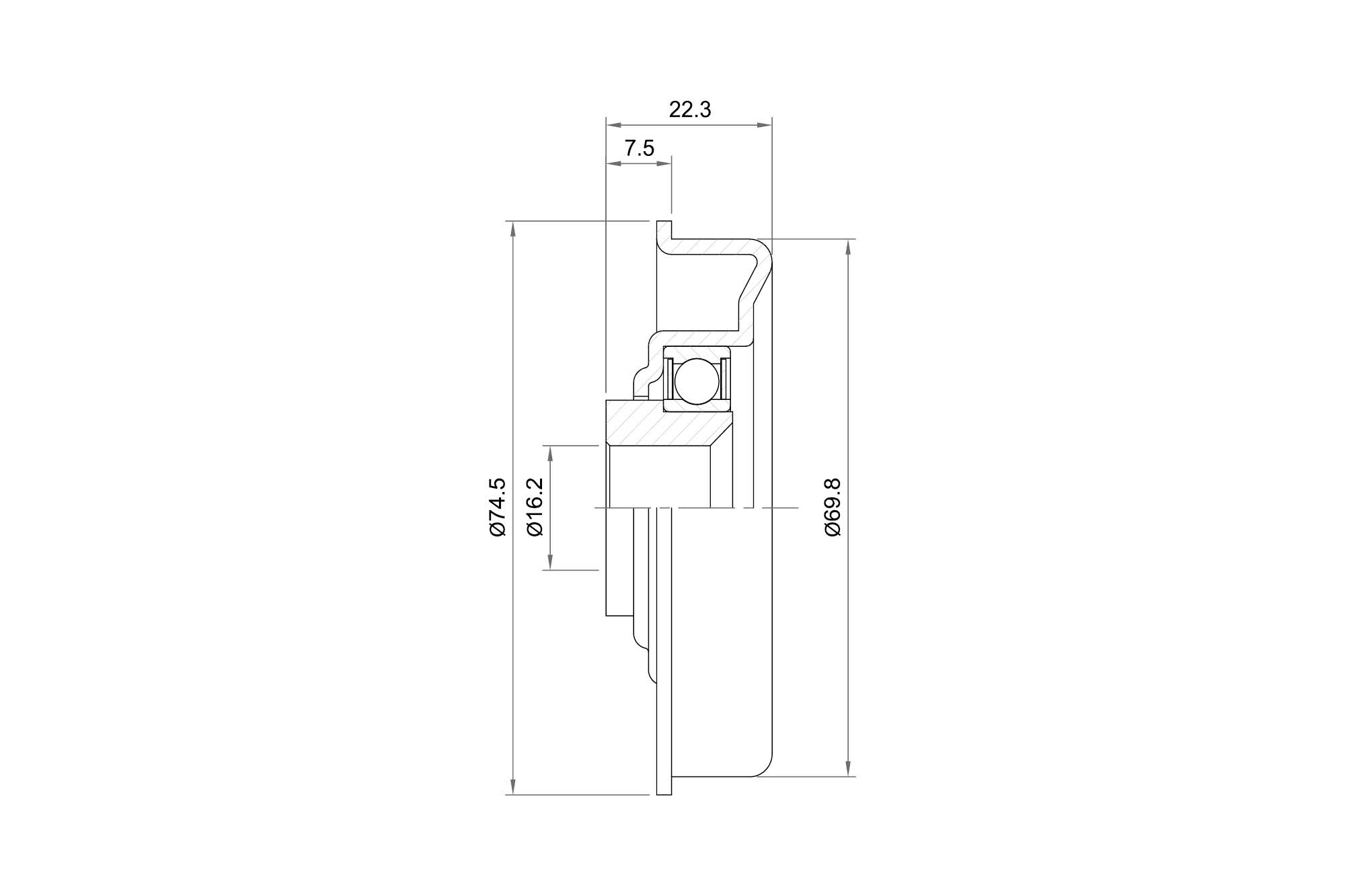 • Load capacity 200kg.• Steel bearing, housing and bush (z/plated).• 6905Z bearing.• Suits; - 76 x 3.2 tube - Galv steel (65 NB light)• Optional bore sizes - 755-16 - 755-19
