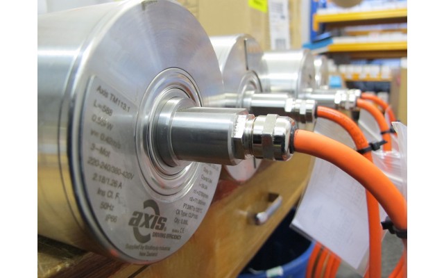 The Axis drive drum is for those situations where you are tight for space and cannot have a conventional motor and gearbox on the shaft of your belt conveyor. They can be used in many situations including, situations where there is powder that could run the risk of being explosive!