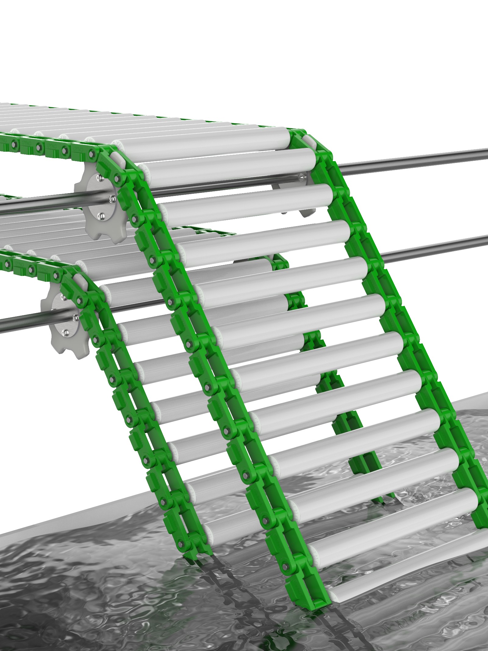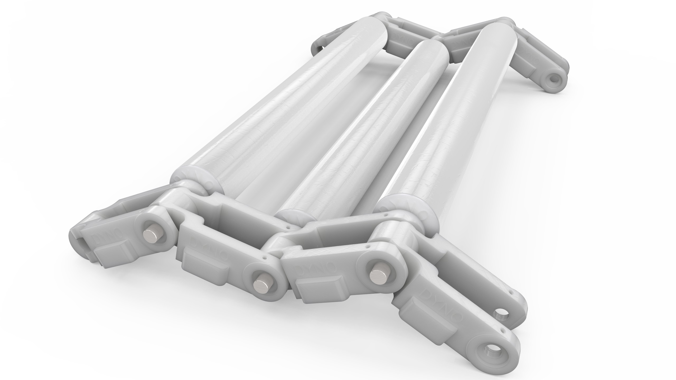 Exclusive to Dyno, the conveyor chain is manufactured from Acetal, and has the advantage of requiring no-wear strip with low co-efficient of friction and is ideal for any challenging product movement. Dyno offers a range of chain options and colours to suit your needs.