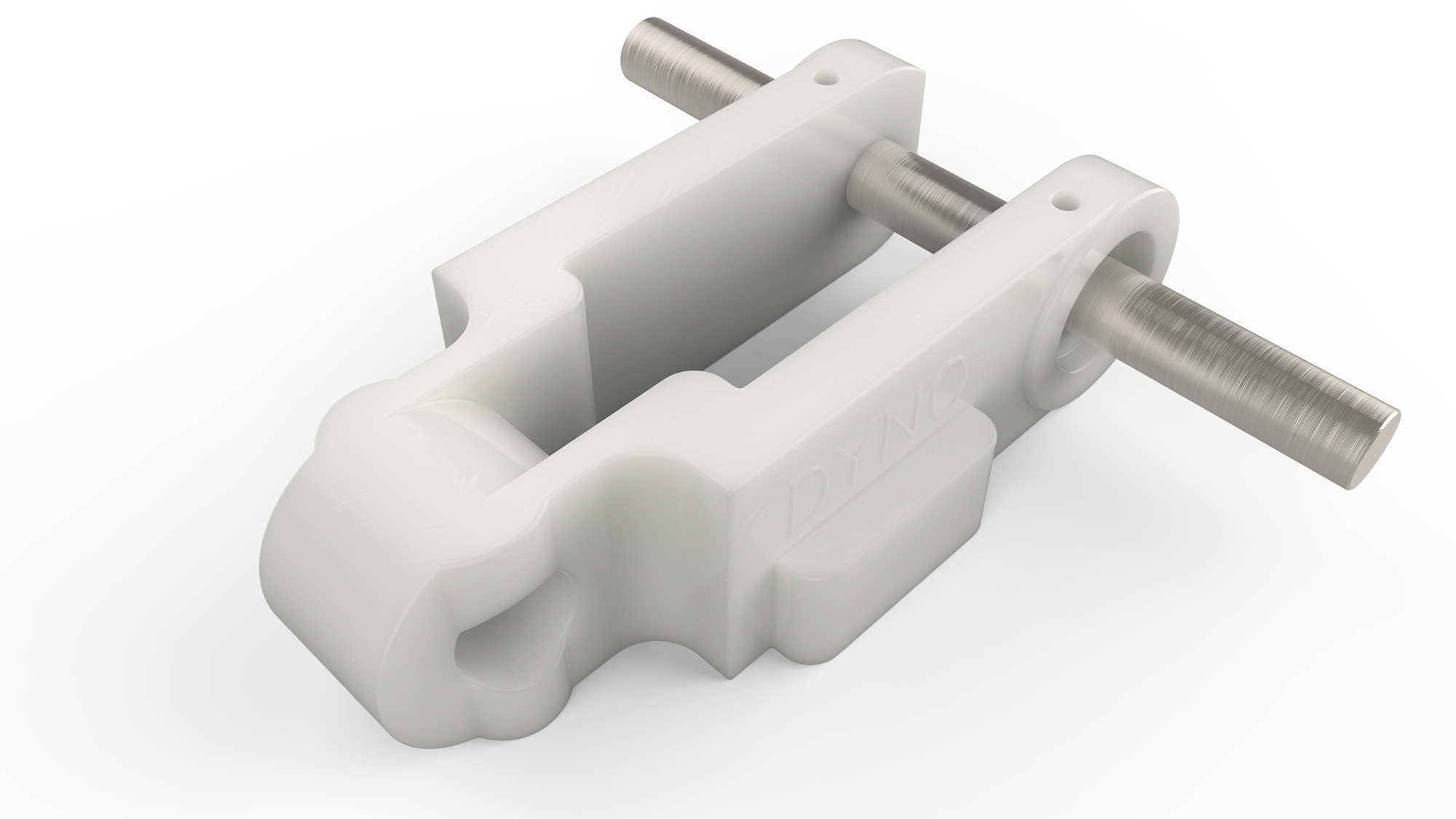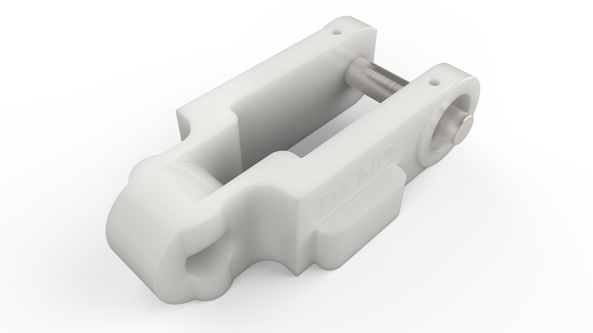 The Dyno Chain system, exclusive to Dyno, is manufactured from Acetal, a high strength plastic with a greater dimensional stability when compared to other common plastics. It has the advantage of requiring no wear strip with low co-efficient of friction and is ideal for any challenging product movement. Dyno offers a range of chain options, and colours to suit your application.