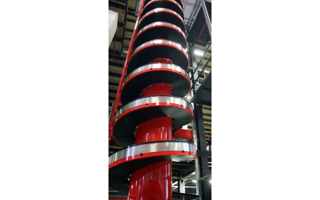 Space saving Ambaflex SpiralVeyor® is perfect for high throughput applications where real estate is precious. Continuously move products up and down many levels, accumulate and much more with proven technology. Manufactured by Ambaflex, world renowned in spiral conveyors.