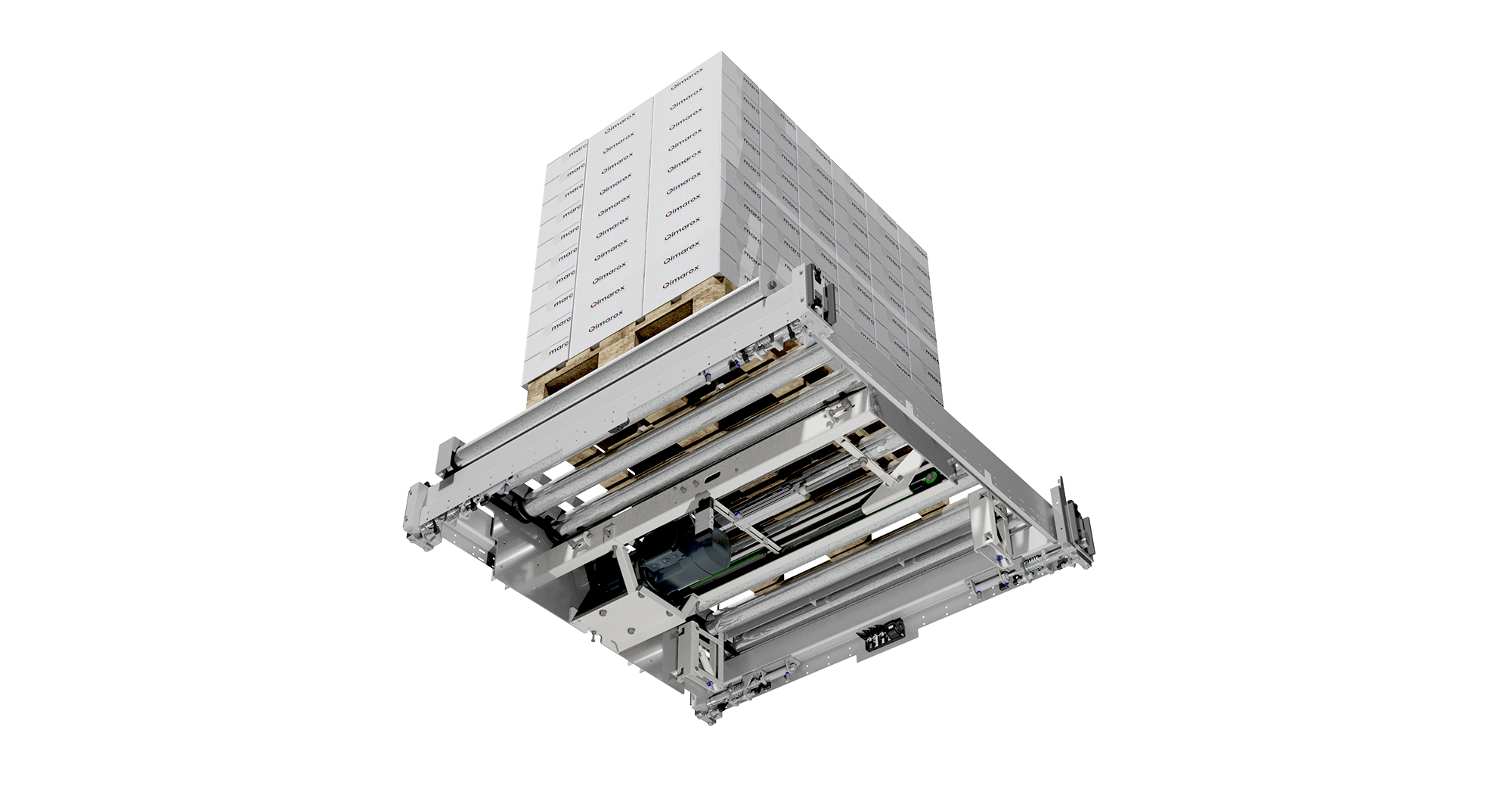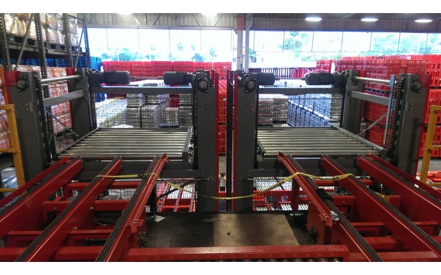 • Can handle pallets and racks up to 1200kg and can transport 60 per hour