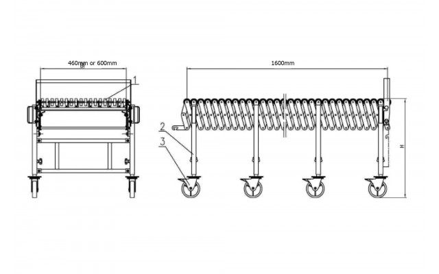 • Adjustable height, simply turn the locking knob to raise or lower the conveyor bed height.