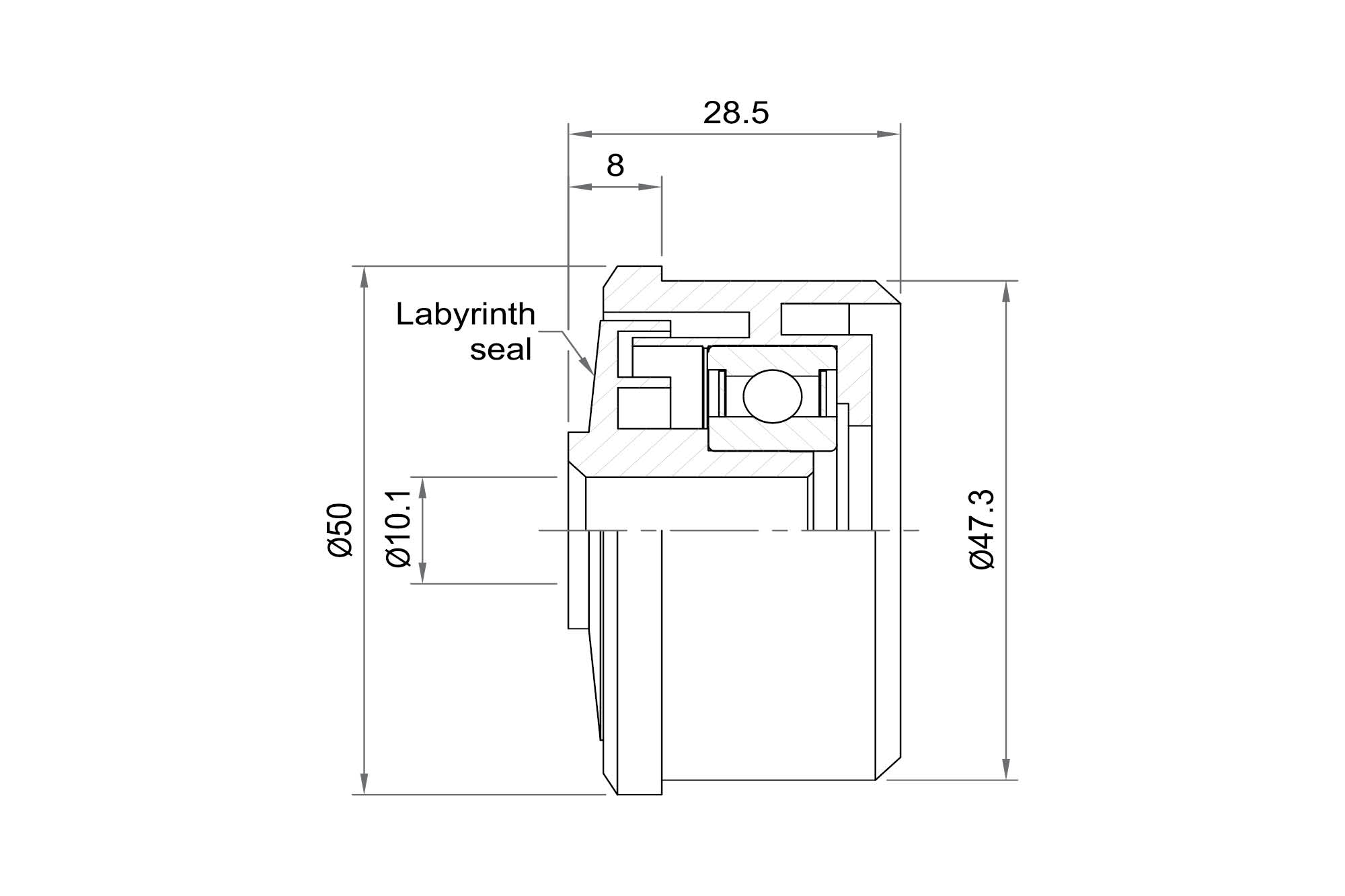 • Black polypropylene labyrinth (antistatic except 8mm).
