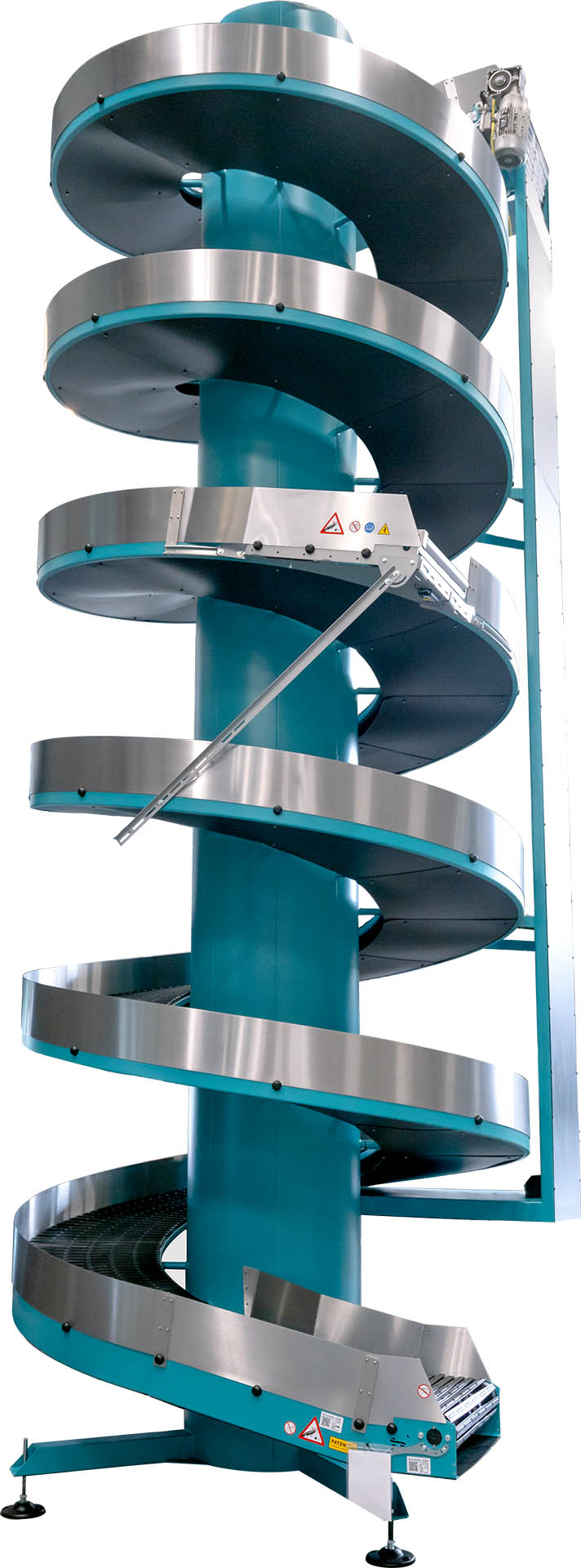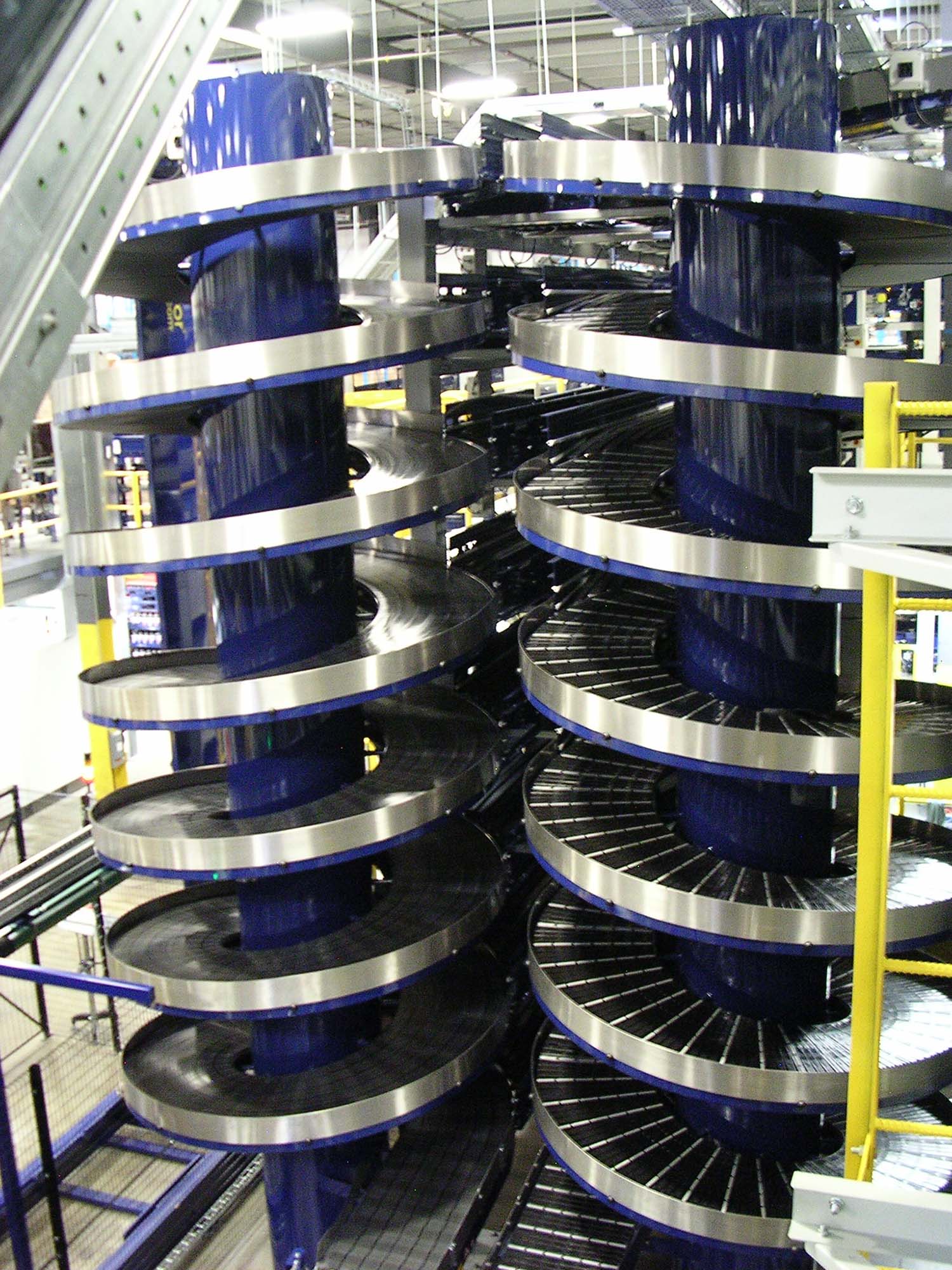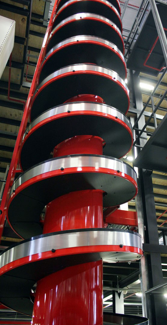 Space saving Ambaflex SpiralVeyor® is perfect for high throughput applications where real estate is precious. Continuously move products up and down many levels, accumulate and much more with proven technology. Manufactured by Ambaflex, world renowned in spiral conveyors.